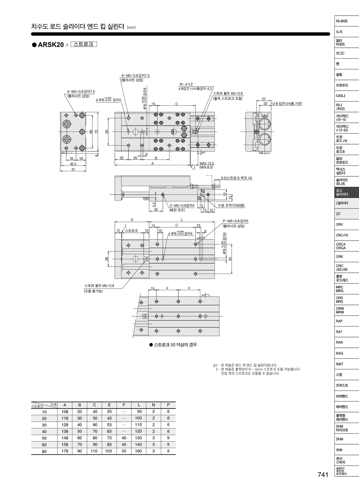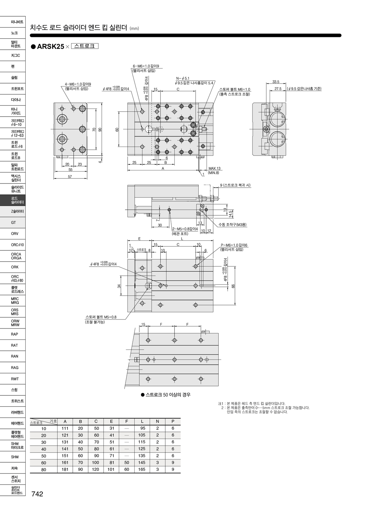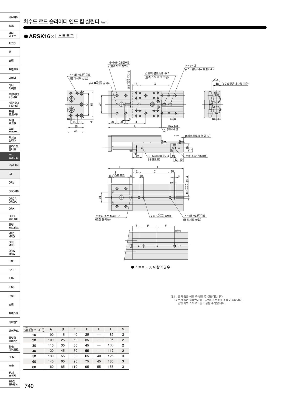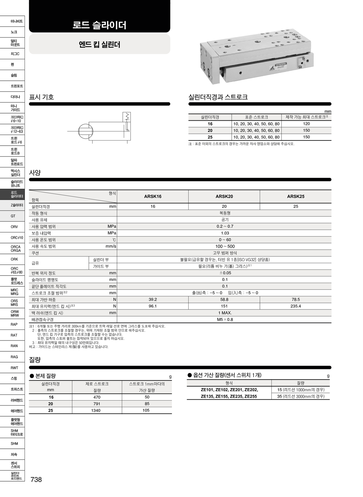 > 제품정보 > 에어실린더·핸드 > 가이드 부착형 > 가이드 부착지그 실린더 > 로드 슬라이더 ARSK 시리즈 (가이드 부착 엔드 킵 형)