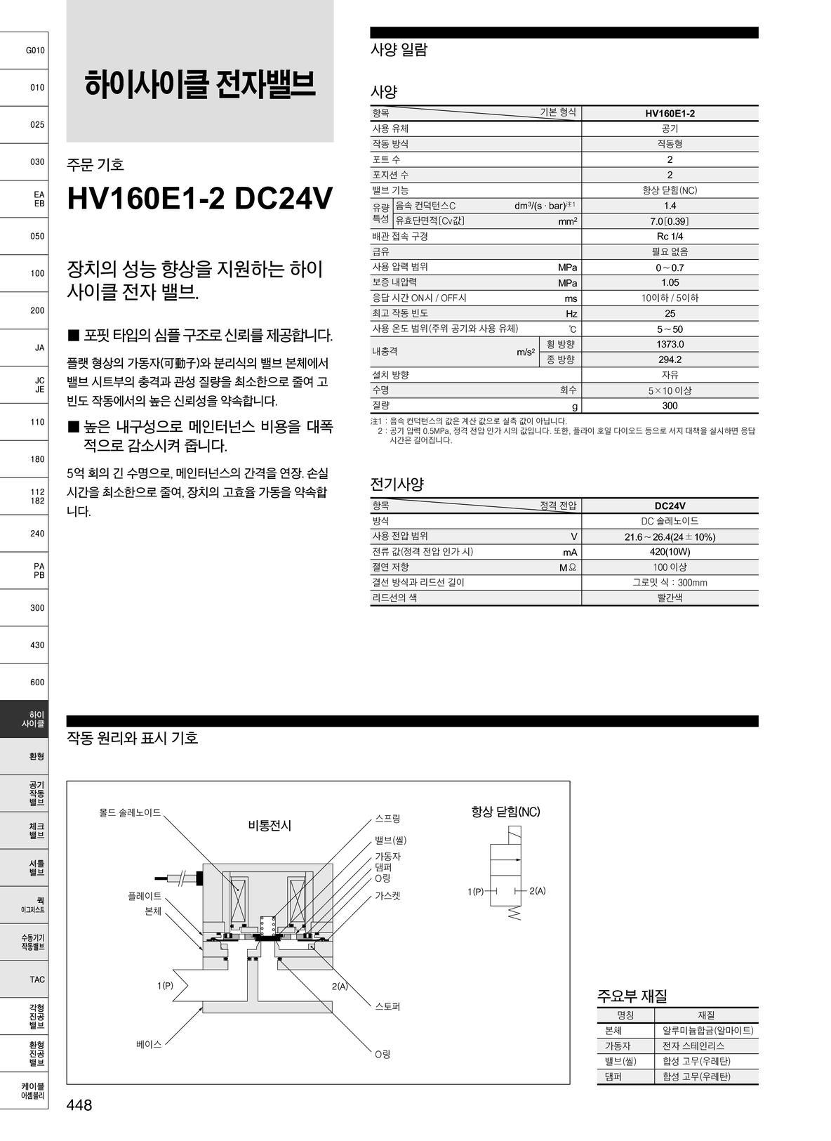 > 제품정보 > 에어밸브 > 솔레노이드 밸브 직동형 > 솔레노이드 밸브 HV 시리즈 (하이 사이클 사양) > 솔레노이드 밸브 HV 시리즈 (하이 사이클 사양)