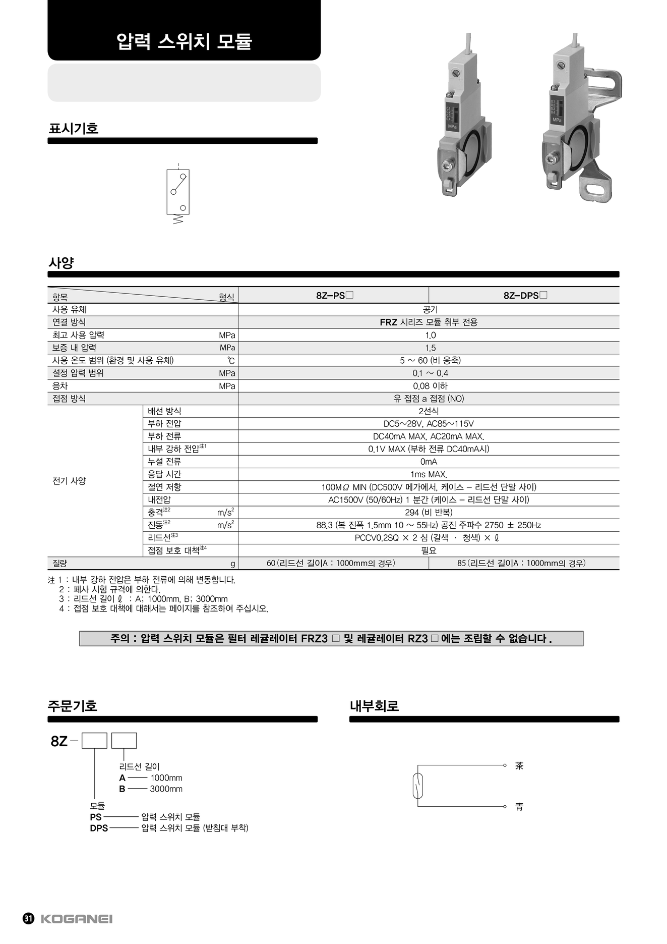 ●FRZ · FRZB 시리즈용 압력 스위치 모듈입니다. 주의 : FRZ 시리즈 FRZ3_ 및 RZ3_에는 조립 할 수 없습니다